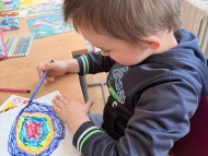 Na Velikonoční neděli 5.4. jsme barvili vajíčka. Tento tradiční zvyk jsme si užili a dětem se vajíčka moc povedla. Použili jsme techniku barvení přes papírovou utěrku pomalovanou fixy. Chlapci si vyzkoušeli i vyfoukávání vajíček a vyfouklé vnitřky si na svačinu umíchali na másle. Hotová vajíčka jsme zavěsili na větvičky ze stromu a dali do vázy. Přidali jsme pomlázky a klubovna byla krásně svátečně nazdobená.